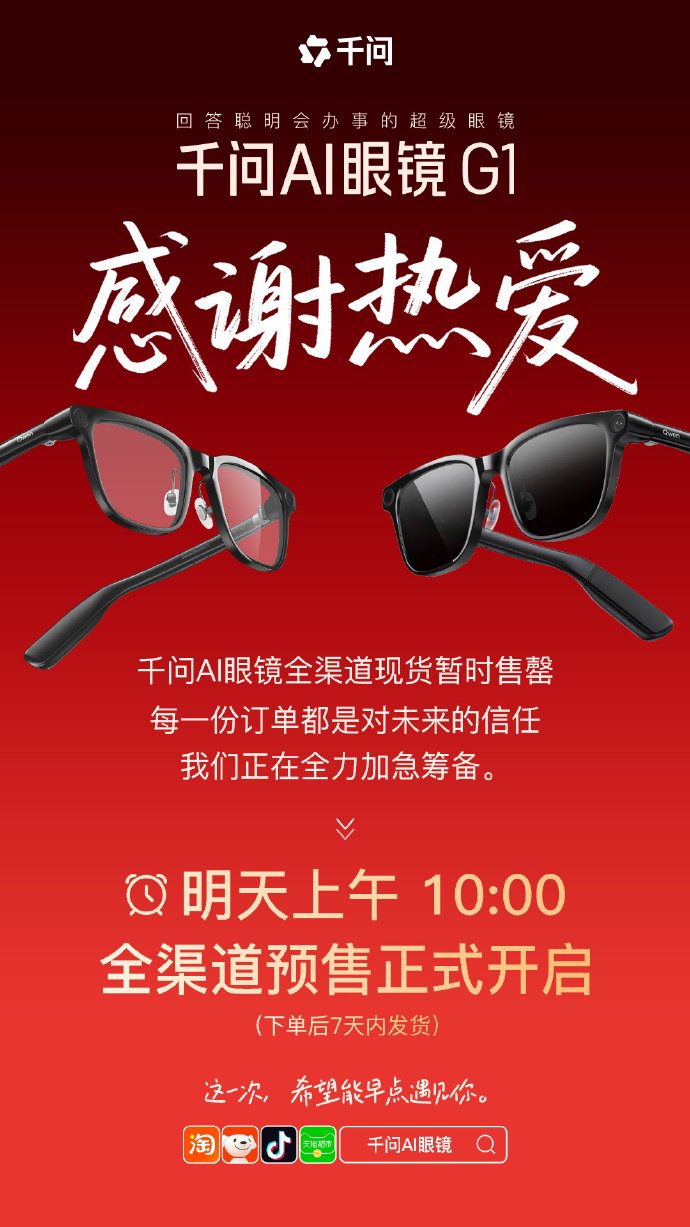 The Qianwen AI Eyewear G1 is now temporarily sold out at launch but will begin pre-orders at a price of approximately $1997 after local subsidies. This innovative smart eyewear features 64GB of storage, bone conduction audio, and advanced low-light image enhancement technology. With a lightweight design of about 41g, it is advertised as suitable for various tasks, including voice assistance, photography, and information retrieval.