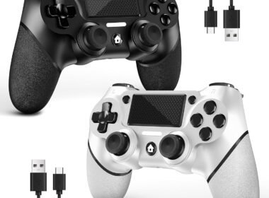 AceGamer 2-Pack Wireless PS4 Controllers – Ergonomic Non-Slip Grip, Compatible with PS4, Pro, Slim & PC – Includes 2 USB-C Cables (Black & White)