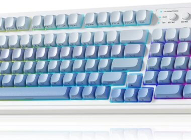 AULA S99 Wireless Gaming Keyboard: Tri-Mode Bluetooth Custom Keyboard with RGB Backlighting, Number Pad, and Programmable Media Knob – Gradient Blue for PC Gamers