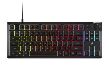 Corsair K55 CORE TKL RGB Gaming Keyboard: Tenkeyless Design, 8-Zone RGB Lighting, Quiet Membrane Keys, Spill Resistant, Media Controls & 1000Hz Polling – Black NA Layout