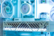- Designed for white-themed setups, it features an innovative back-plug power supply system that minimizes internal clutter.