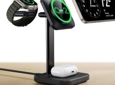 “ESR Qi2 3-in-1 Charging Station: Certified Apple Watch Charger & MagSafe Stand for iPhone – Travel Charger for Multiple Devices”: Available now at [price_with_discount]