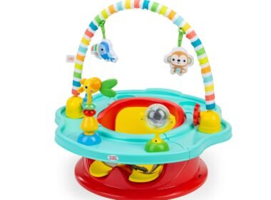 Bright Starts Playful Paradise 3-in-1 SuperSeat transforms from a supportive activity seat to a floor seat with snacking tray to a booster seat at mealtime; helps baby learn to sit up unassisted