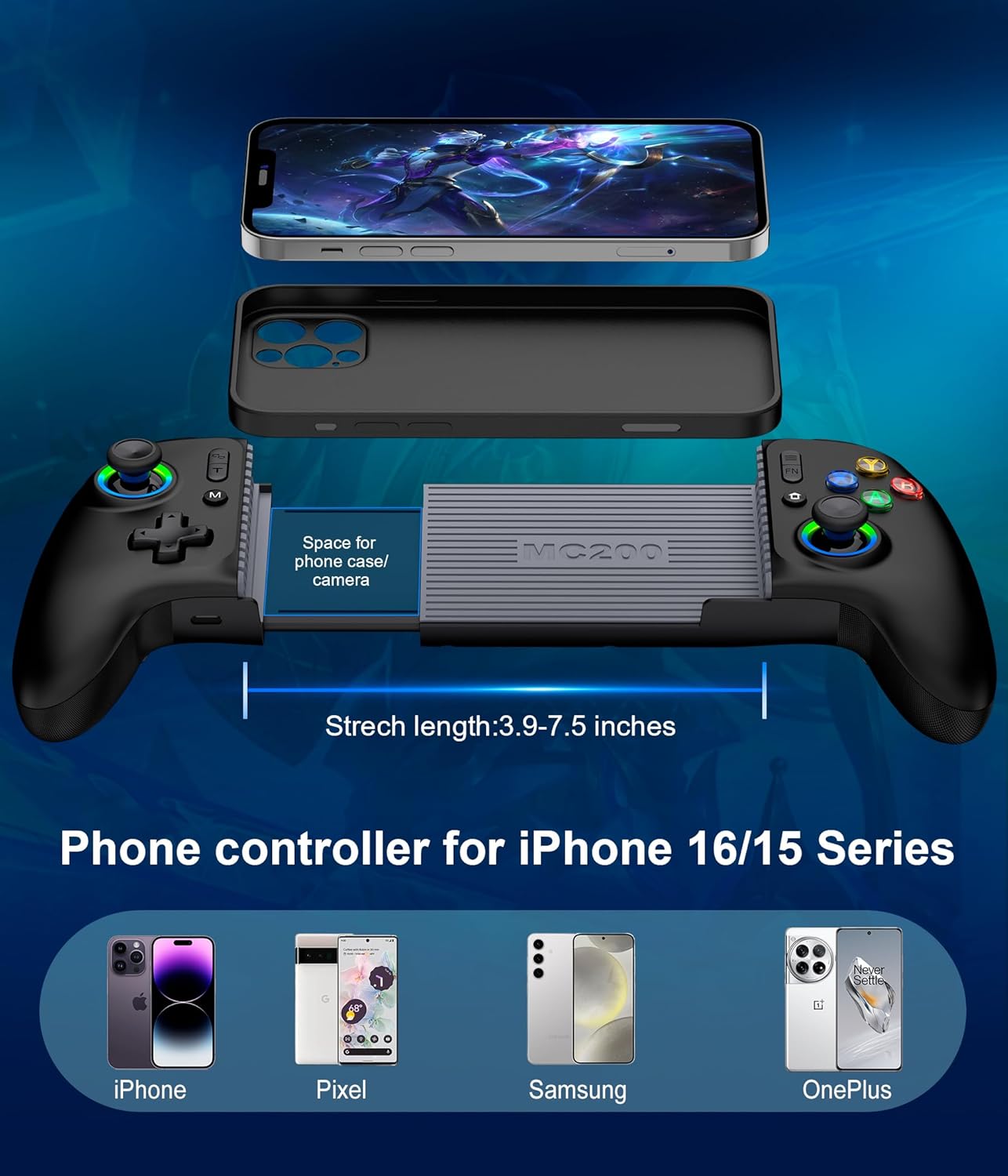 Mocagen ensures broad compatibility, as it connects seamlessly via Bluetooth to both iPhones (including the latest iPhone 16 models) and Android devices, eliminating the hassle of wires while protecting your phone’s charging port. Plus, the ergonomic design prioritizes user comfort, allowing for long gaming sessions without fatigue – making it perfect for both gaming marathons and quick matches.